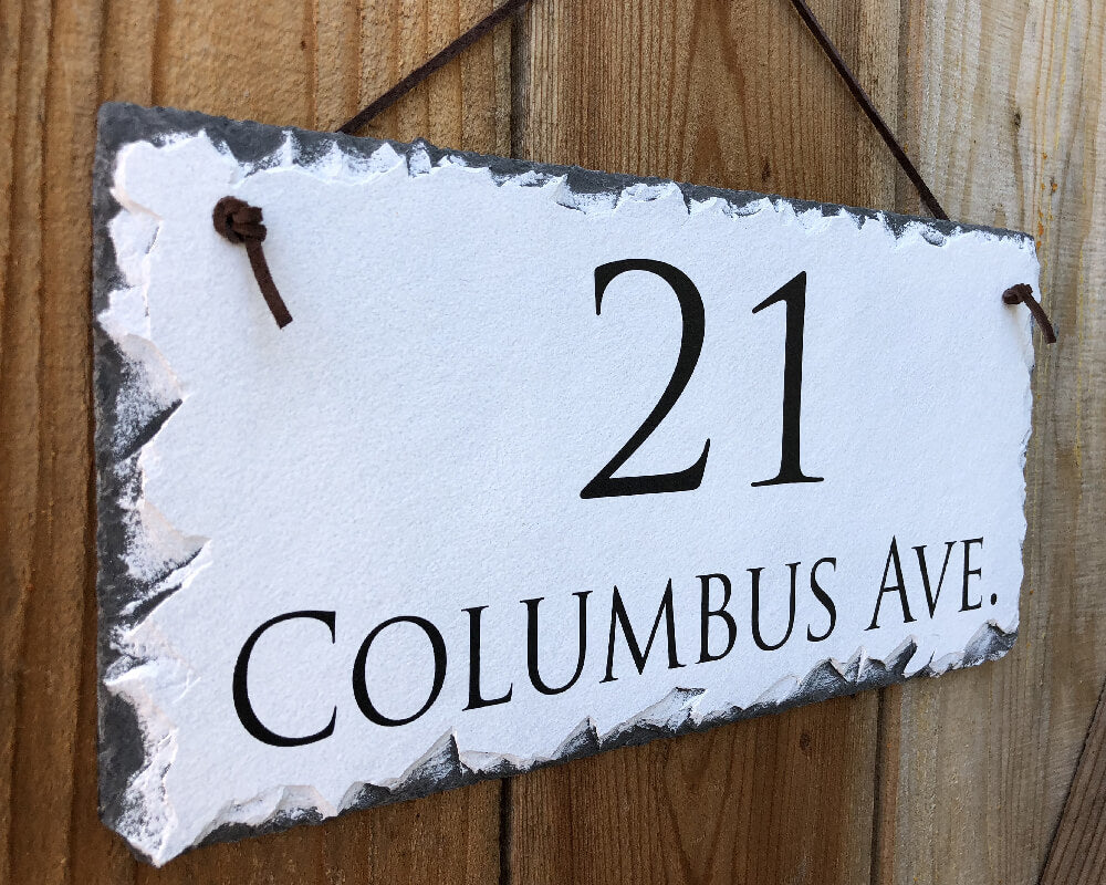 Improve the curb appeal of your property with this beautifully handcrafted slate plaque. Using natural, riven-edged slate, this weather resistant sign adds a uniquely elegant quality to the front of your home.