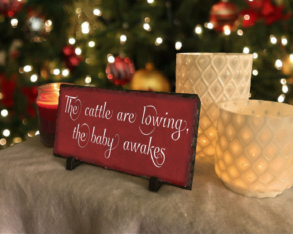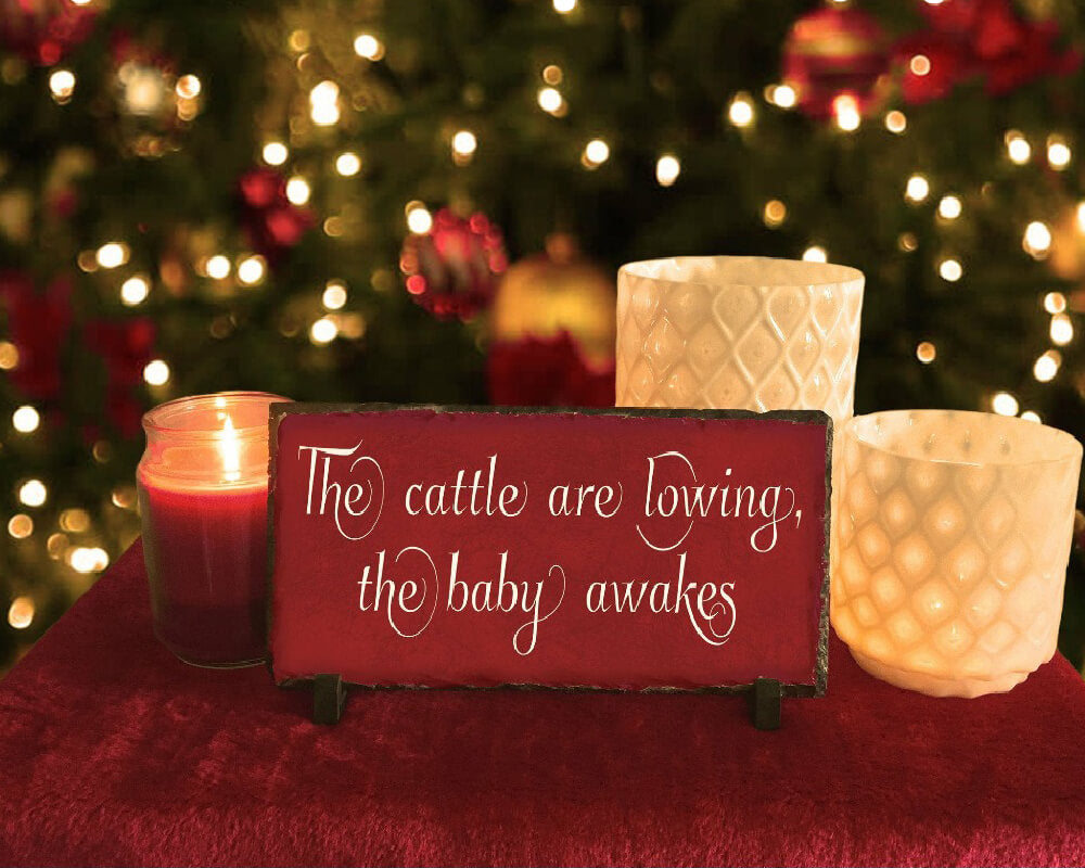 This beautifully handcrafted 'The Cattle Are Lowing' slate plaque is the perfect decoration to welcome guests into your house this festive season! Using natural, riven-edged slate, this plaque is weather resistant and so can be placed inside or outside your home.